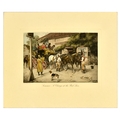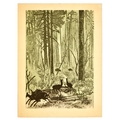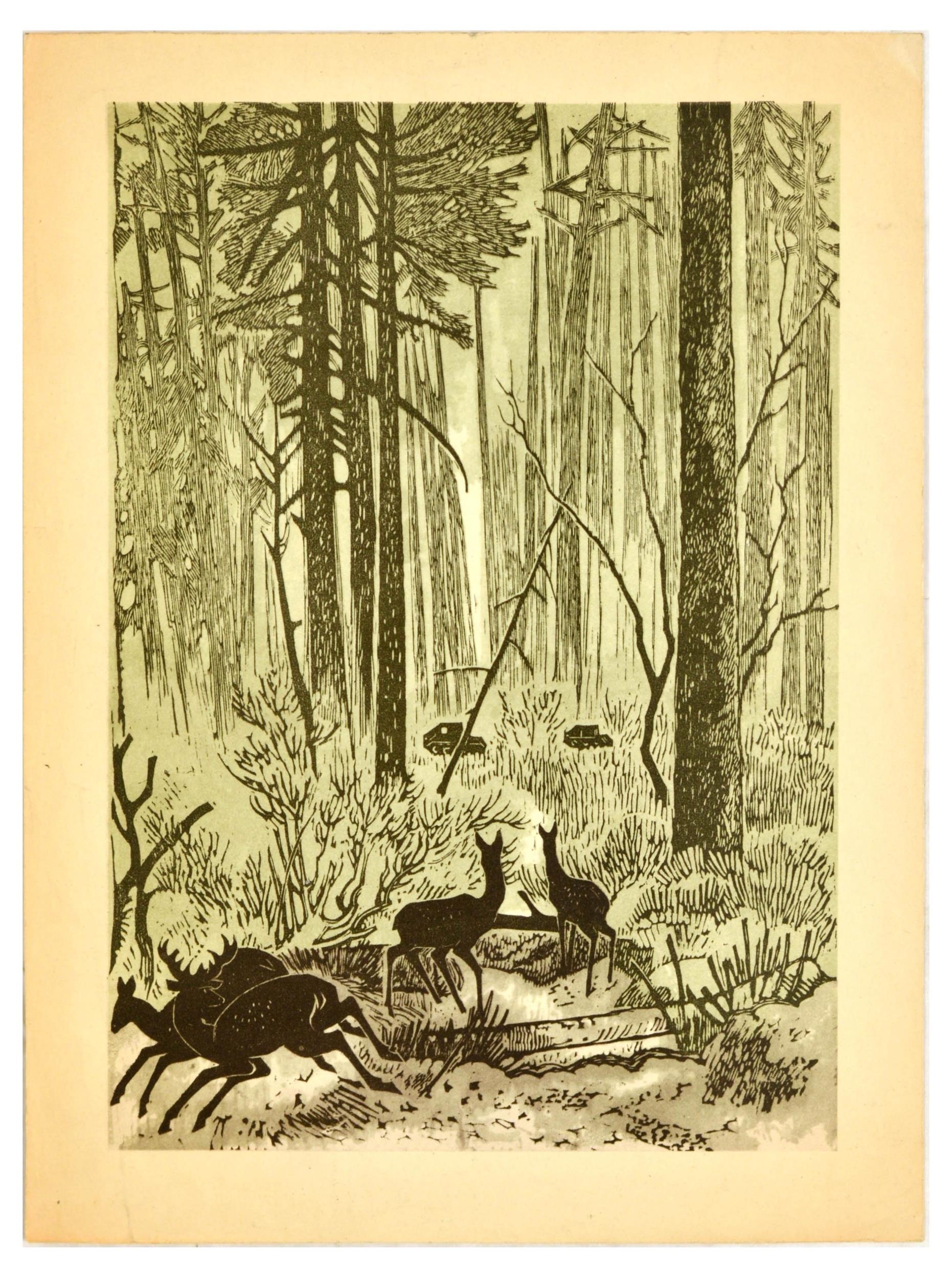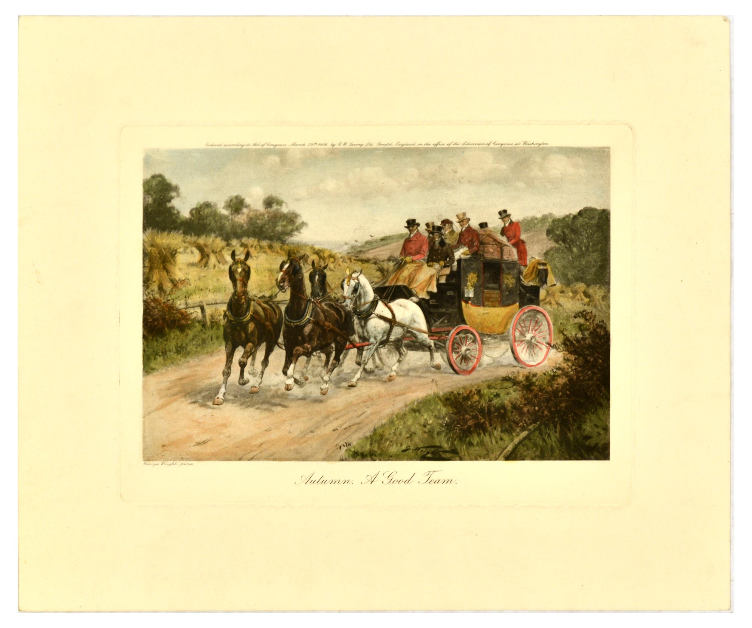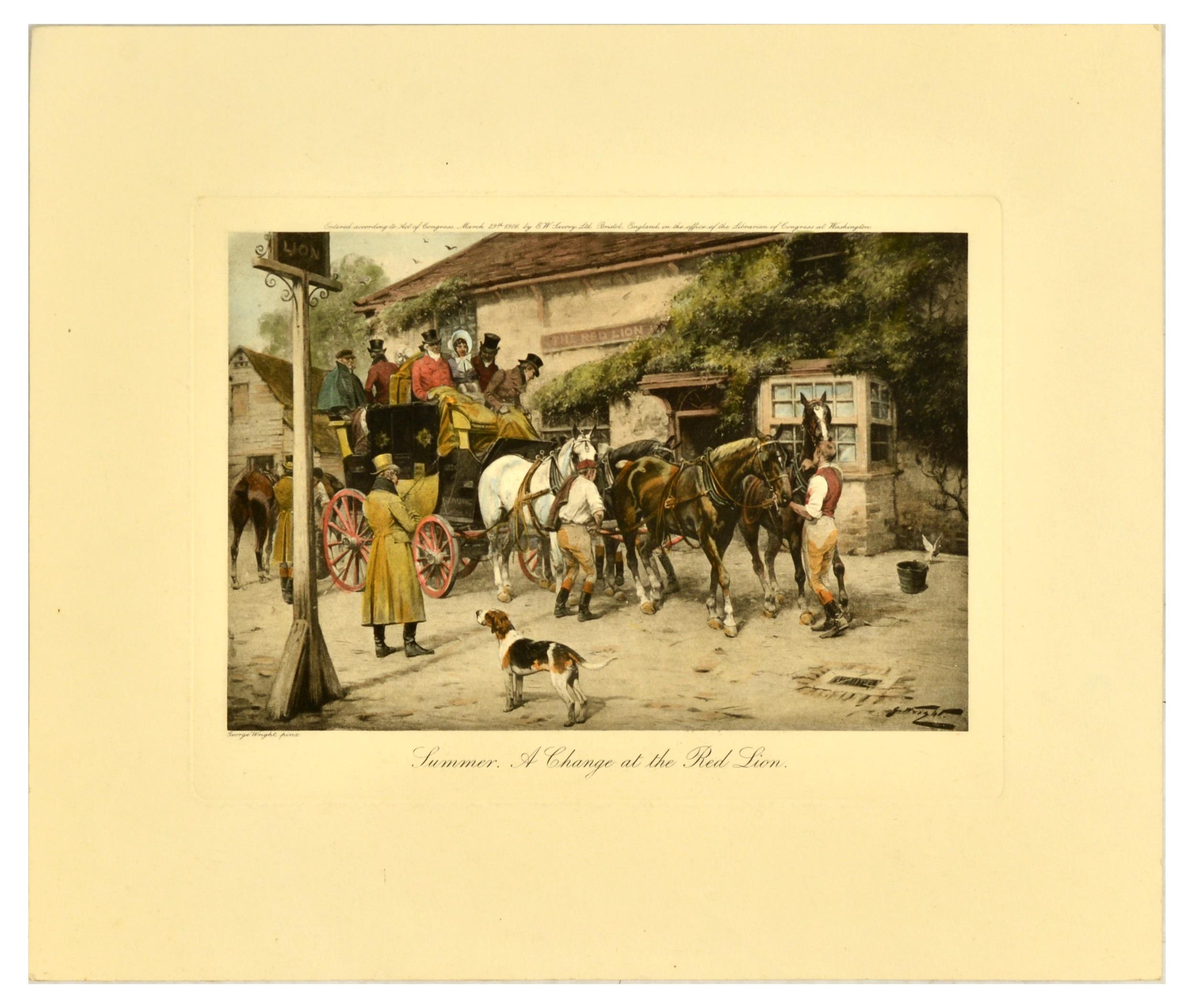 Poster Art Print Set George Wright Huang Yongyu Beardsley. Set of 5 decorational engravings, posters and prints. 1. Original antique engraving titled Summer. A Change at the Red Lion, featuring an artwork by George Wright (1860-1944), one of the foremost equestrian artists of his time, depicting a group of people on a horse-drawn carriage at an inn, showing a stagecoach stopping to change horses. Small print at the top reads - Entered according to Act of Congress, March 29th 1906, by E.W. Savory Ltd. Bristol, England in the office of the Librarian of Congress at Washington. Horizobntal. Good condition, minor creasing, staining, indent in paper from printing plate. Country of issue: UK, designer: George Wright, size (cm): 32x38, year of printing: 1906; 2. Original antique engraving titled Autumn. A Good Team, featuring an artwork by George Wright (1860-1944), one of the foremost equestrian artists of his time, depicting a group of people on a horse-drawn carriage on a country road. Small print at the top reads - Entered according to Act of Congress, March 29th 1906, by E.W. Savory Ltd. Bristol, England in the office of the Librarian of Congress at Washington. Horizontal. Good condition, minor creasing, staining, indent in paper from printing plate. Country of issue: UK, designer: George Wright, size (cm): 32x38, year of printing: 1906; 3. Original food art print featuring an illustration of tomatoes on the vine, with small cherry tomatoes and larger green unripe tomatoes. Fine print reads rwsill. Horizontal. Good condition, creasing, staining, pencil markings. Country of issue: Unknown, designer: Unknown, size (cm): 28x38, year of printing: Unknown; 4. Original vintage print by Huang Yongyu (1924-2023) titled New Sounds, depicting several deer in a wooded, wintry landscape, with some startled by vehicles in the distance. Good condition, creasing, staining, small tears. Country of issue: China, designer: Huang Yongyu, size (cm): 29.5x22, year of printing: 1950s; 5. Vintage black and white illustration by English artist Aubrey Beardsley (1872-1898), from the series created for the 1894 English edition of Oscar Wilde's play Salome, drawings were influenced by Japanese woodcuts, and depicted the grotesque, the decadent, and the erotic. The poster depicts Salome with her mother, Herodias. Salome's robe features a decorative pattern of stylised butterflies and other motifs, and she wears an elaborate headdress. Printed by Blow Up Inc. Good condition, creasing, tears, staining. Country of issue: UK, designer: Aubrey Vincent Beardsley, size (cm): 76x57.5, year of printing: 1990s.