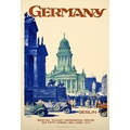 Travel Poster Germany Berlin Art Deco Dzubas. Original vintage travel poster - Germany Berlin - by the German artist Wilhelm 'Willy' Dzubas (b. 1887) for the country's capital city featuring a stunning Art Deco painting depicting historic monuments and buildings in Berlin with classic cars and smartly dressed people walking in the foreground, the stylised title text above and below with the information reading: German Tourist Information Office 665 Fifth Avenue New York City. Good condition, minor staining, minor creasing, repaired tears, backed on linen. Country of issue: Germany, designer: Wilhelm 'Willy' Dzubas, size (cm): 74x51, year of printing: 1930s.