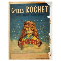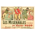 Advertising Poster Les Miserables Victor Hugo Geo Dupuis. Advertising Poster Les Miserables Victor Hugo Geo Dupuis. Original antique advertising poster for the book Les Miserables by Victor Hugo featuring an illustration by Geo Dupuis (1875-1932) depicting the characters of the novel, possibly The Thenardiers couple sitting on a bench, Jean Valjean in chains and prison uniform, and Fantine in a red dress and flowers in her hair being grabbed by Javert in green coat and black top hat. Printed by Imp Ch Wall & Cie, Paris. Horizontal. Large size. Fair condition, folds, creasing, tears, staining, paper losses, punched holes, 2 sheet poster. Country of issue: France, designer: Geo Dupuis, size (cm): 130x199, year of printing: 1900s.