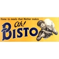 Advertising Poster Bisto Home to Meals That Mother. Advertising Poster Bisto Home to Meals That Mother. Original vintage advertising poster: Ah! Bisto Home to meals that Mother Makes. Large double sided banner size poster featuring a black and white illustration of a smiling young sailor in uniform carrying a heavy bag over his shoulder and giving the viewer the thumbs up with the text on the left in stylised black and dark blue letters; the other side features half a Bisto food box marked Bisto for Better Gravy on the top. Horizontal. Good condition, folds, stains and creases. Country: UK, year of printing: 1920s, designer: Unknown, size (cm): 50.5x121